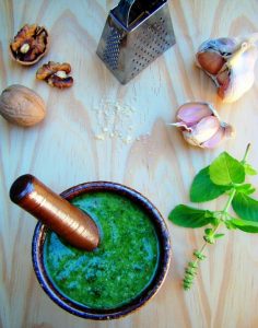 O pesto genovês é um molho cru, fresco e vibrante, originário da região da Ligúria. Feito com manjericão fresco, pinhões, alho, queijo parmesão e azeite de oliva, o pesto é um exemplo perfeito de como ingredientes simples podem criar algo extraordinário.
